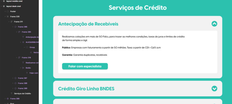 O layout utiliza bastante de auto layout e diferentes configurações inteligentes do Figma para garantir o posicionamento correto de objetos desde elementos em formulários até artes vetoriais.