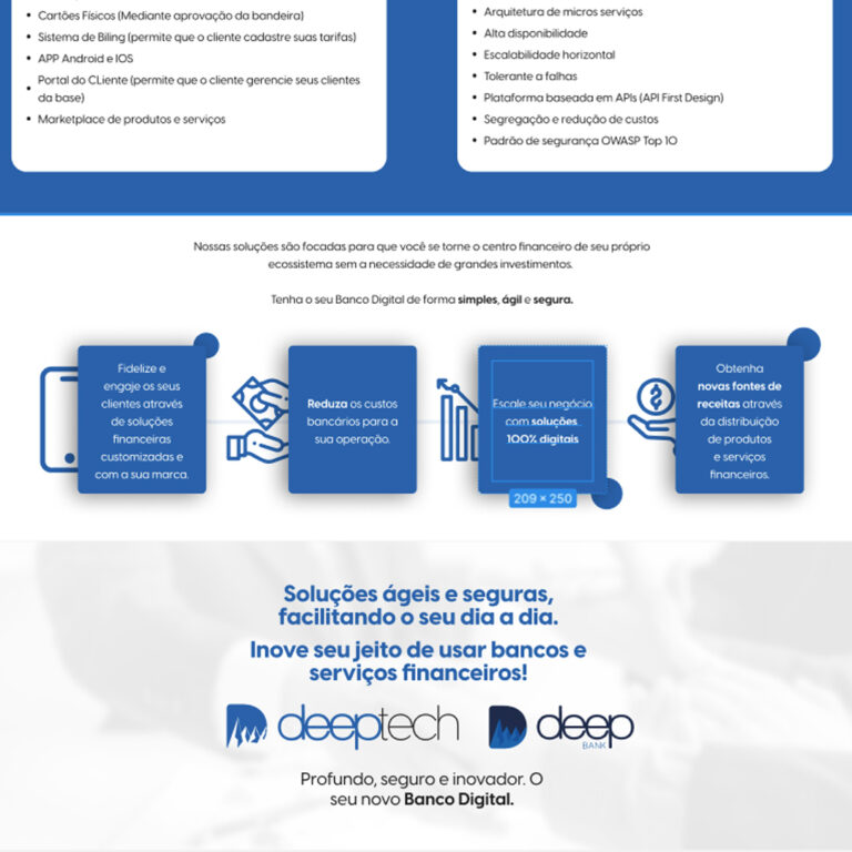 Junto de sua nova identidade visual e presença digital, a prestadora de serviços bancários diversos Deep Bank buscava desenhar do zero um novo site para adequar sua nova postura e novos serviços.