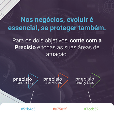 A Precisio possui diversas submarcas para representar cada setor de expertise em que atual. Pensando nisso, adequamos essas diferentes identidades utilizando de cores sutis na iluminação e detalhamento das postagens. Criamos também texturas customizadas utilizando formas da marca para representar o movimento e modernidade.