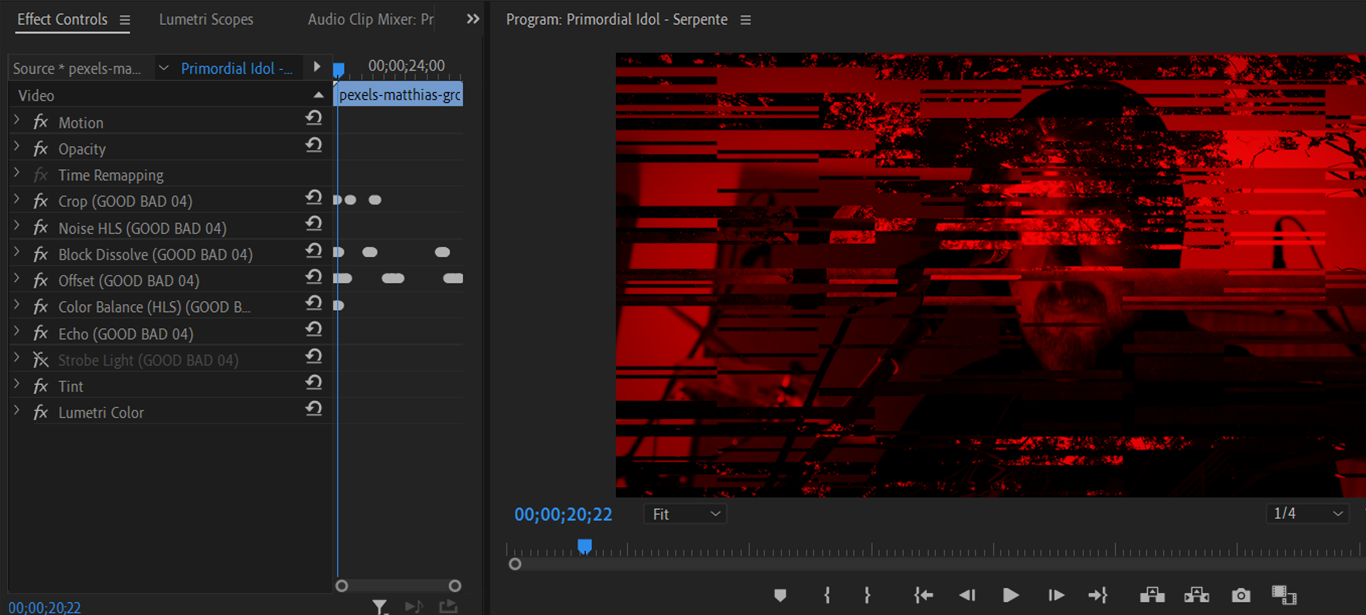 Percebi, porém, que a luz vermelha junto do efeito deixava o rosto do vocalista rosado, então alguns efeitos cara corrigir detalhes específicos como este também foram aplicados.